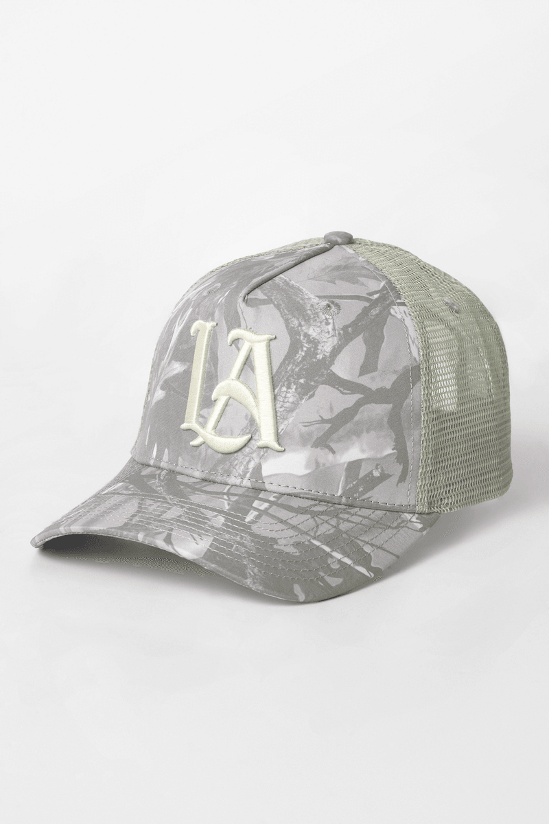 - Stylish Look: Bold tree camo pattern with an embroidered "LA" logo.
