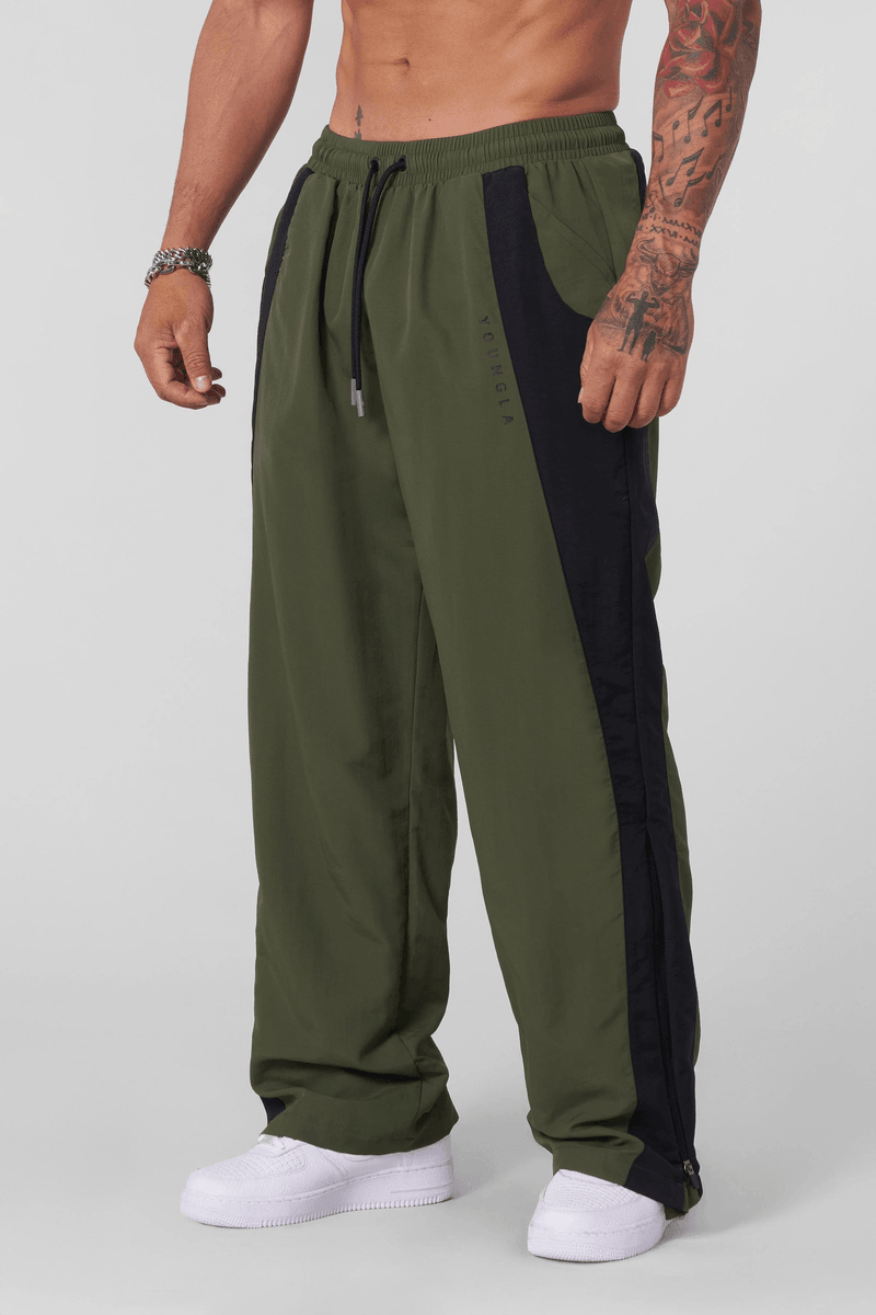 With their baggy fit and adjustable zippered openings, you can tailor the look and feel to your preference. The contrasting side panels not only enhance the aesthetic but also provide a sporty flair that stands out. Plus, the subtle Youngla branding completes the design, making these pants a must-have in your collection.