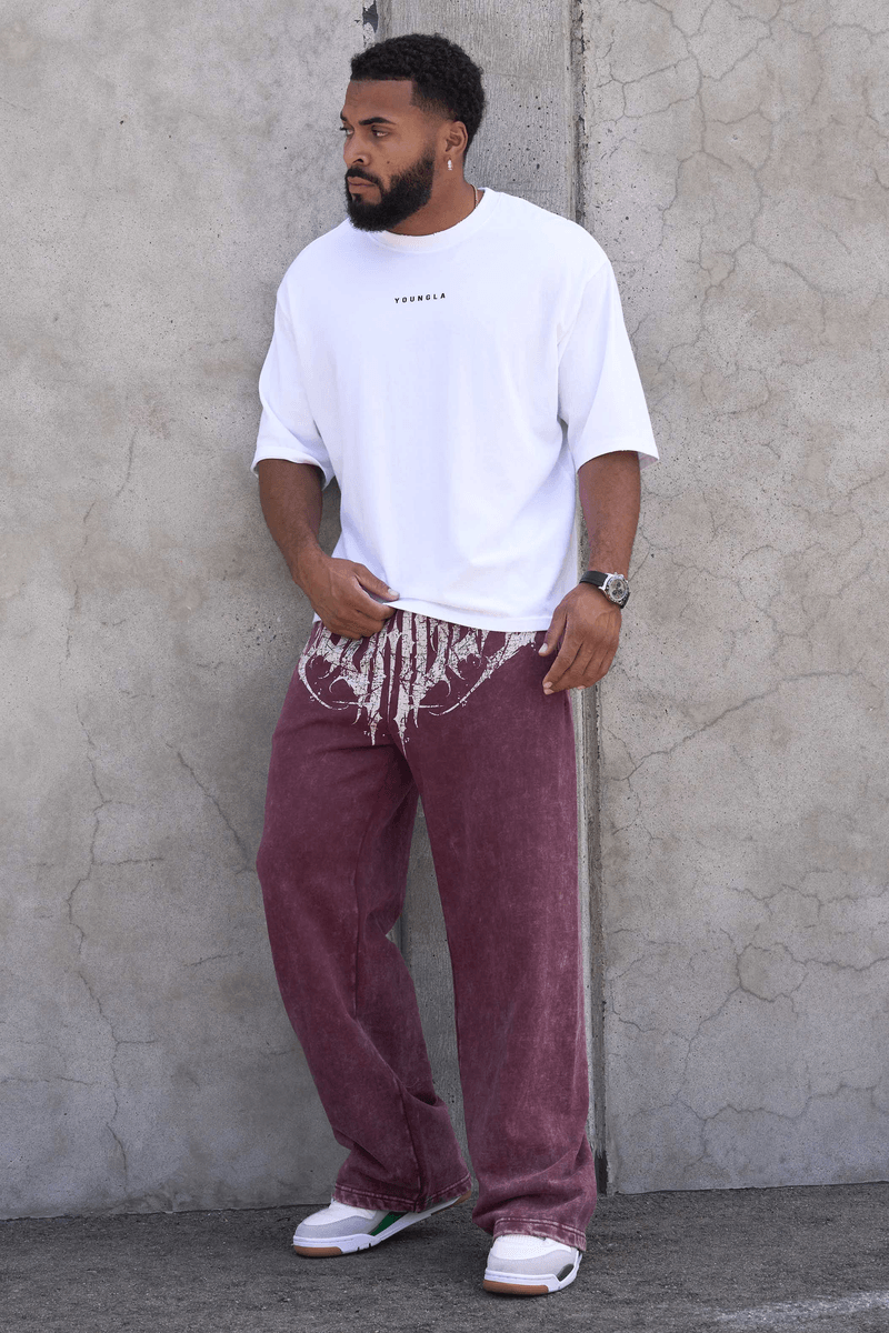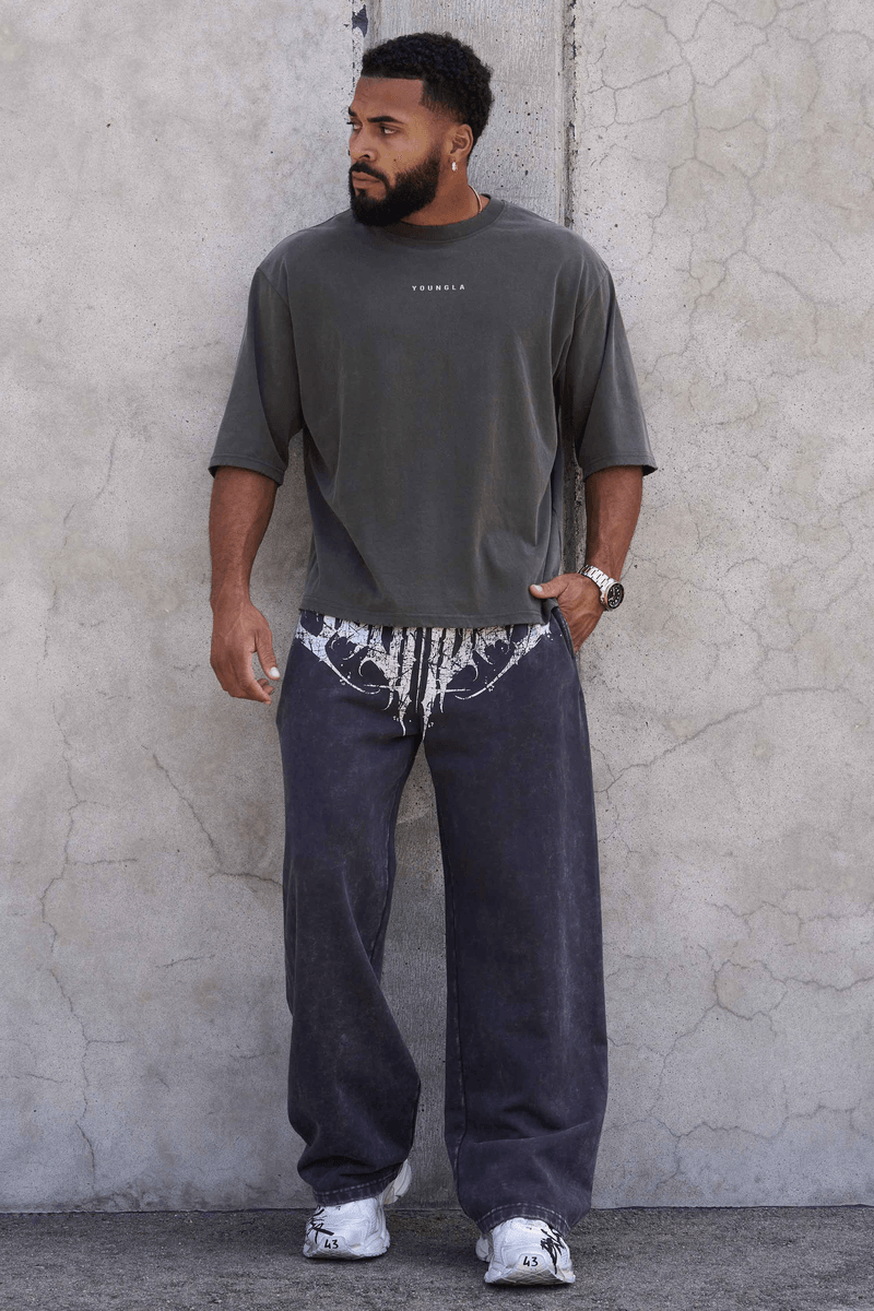 Elevate your streetwear with the Youngla 2079 - Dark Wave Joggers Black Wash. These joggers combine a bold design with exceptional comfort, making them the perfect addition to your casual wardrobe.