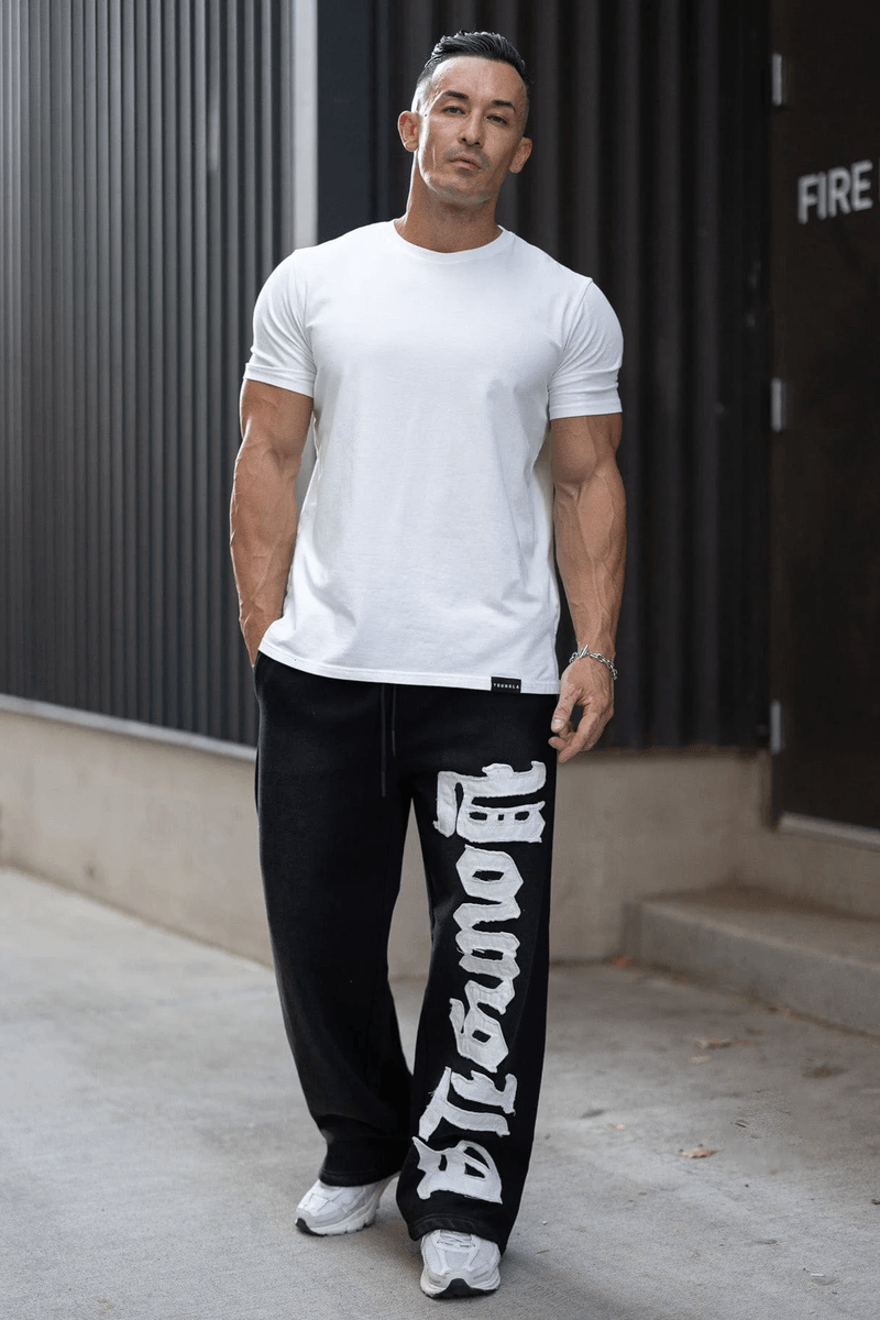 The Youngla 2127 - Big Patch Sweats Black Wash offers a perfect blend of style and comfort. With a relaxed, baggy fit, these joggers are designed for those who prioritize a laid-back aesthetic without sacrificing quality. The no-cuff feature ensures unrestricted movement, making them suitable for both lounging and active days. The sprayed-wash finish provides a unique, edgy look that fits seamlessly into any casual outfit.