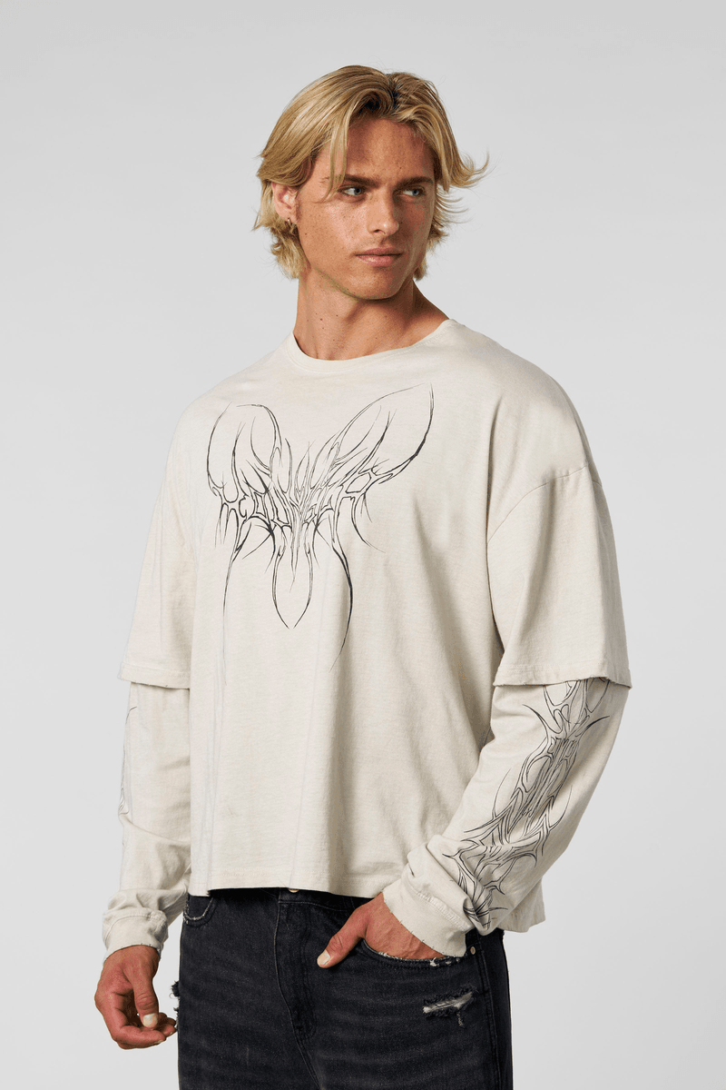 Elevate your streetwear game with the Youngla 8007 - Tribal Longsleeves Shirt Off-White. This shirt combines nostalgic early 2000s vibes with modern style, making it a must-have addition to your wardrobe.