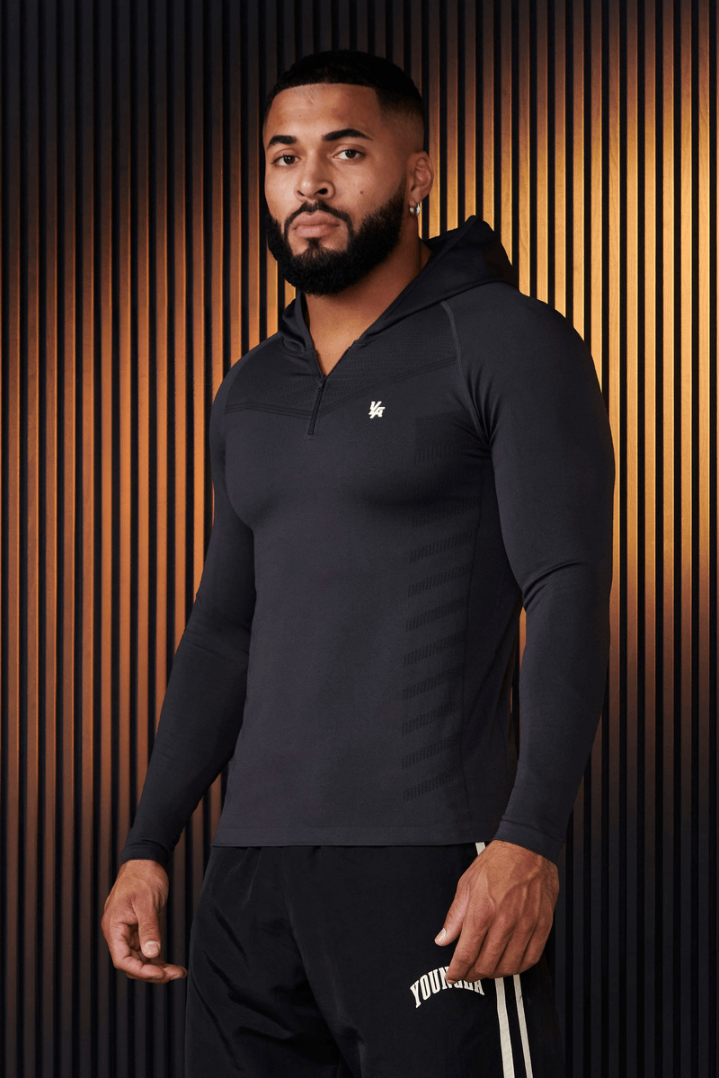 Elevate your training sessions with the Youngla 832 - SuperVillain Compression Hoodie in Charcoal. This performance-enhancing hoodie is designed for athletes who demand style, comfort, and functionality, especially in cooler weather.