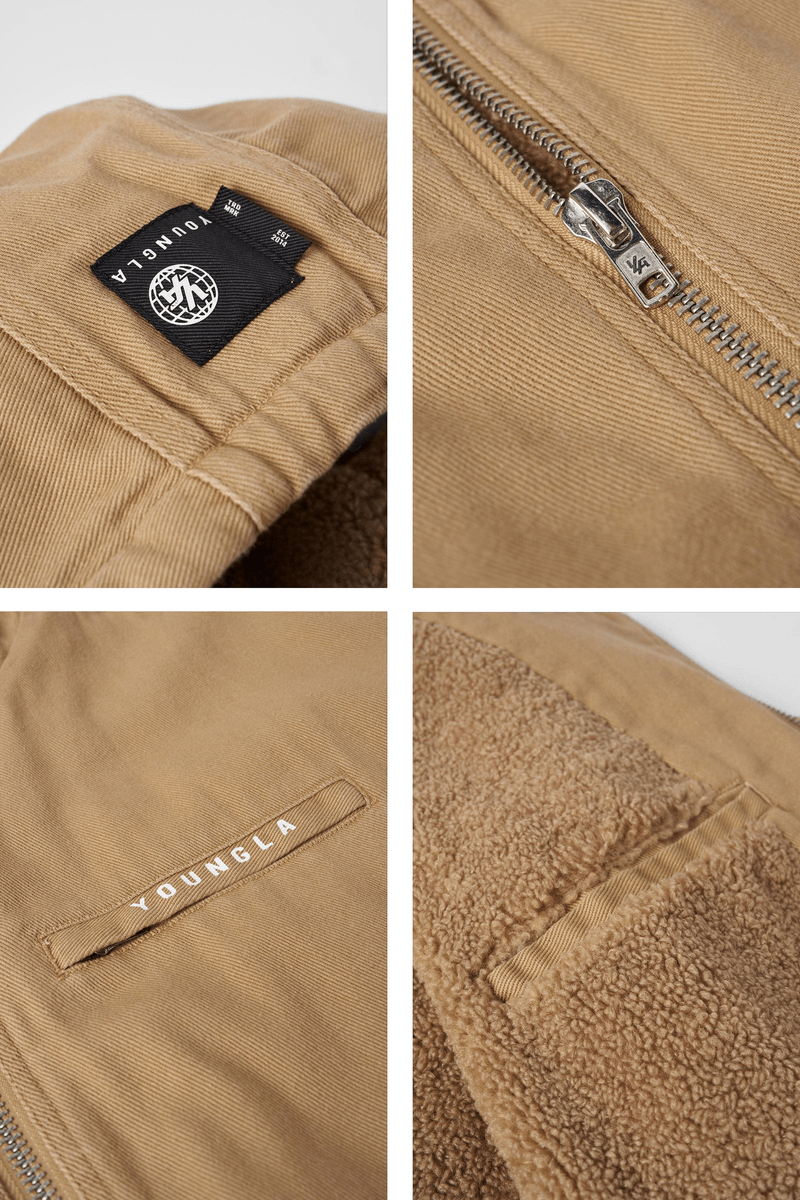The Youngla 5014 - Bronco Jackets Black is crafted from a robust 350 gsm cotton shell, ensuring long-lasting wear while maintaining a lightweight feel. The interior is lined with 370 gsm sherpa fabric, providing unmatched warmth and coziness. Whether you're heading out for a casual day or layering up for a night out, this jacket is your go-to choice.