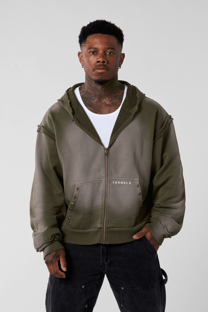 Elevate your streetwear style with the Youngla 5024 - Deconstructed Terry Hoodies Olive Wash. Crafted for those who appreciate a blend of comfort and bold design, this hoodie is the perfect addition to any wardrobe.