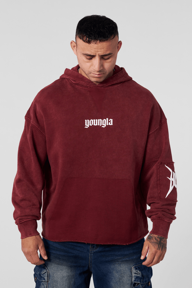 The Youngla 5025 - Patch Hoodie Navy Wash combines comfort and style seamlessly. Crafted from 100% cotton, it offers a relaxed fit that feels great on any body type. The standout design, featuring an oversized reaper graphic on the back and distressed red text, ensures you turn heads wherever you go. Whether you're hitting the streets or hanging out with friends, this hoodie adds a touch of edgy flair to any outfit.