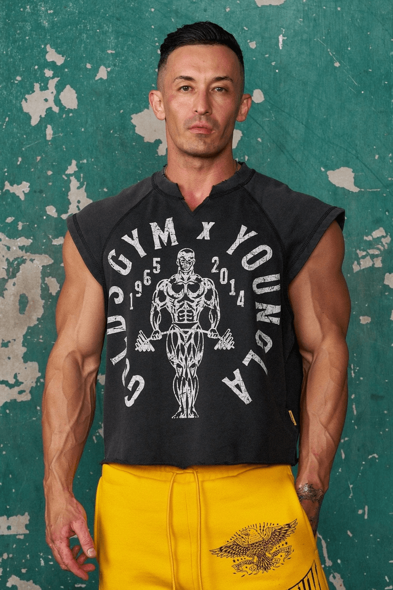 Elevate your workout wardrobe with the Youngla 5069 - Gold's Gym Vintage Cut Offs Black Wash. Designed for those who appreciate both style and performance, these cut-offs deliver an effortlessly rugged look that’s perfect for any gym session or casual outing.