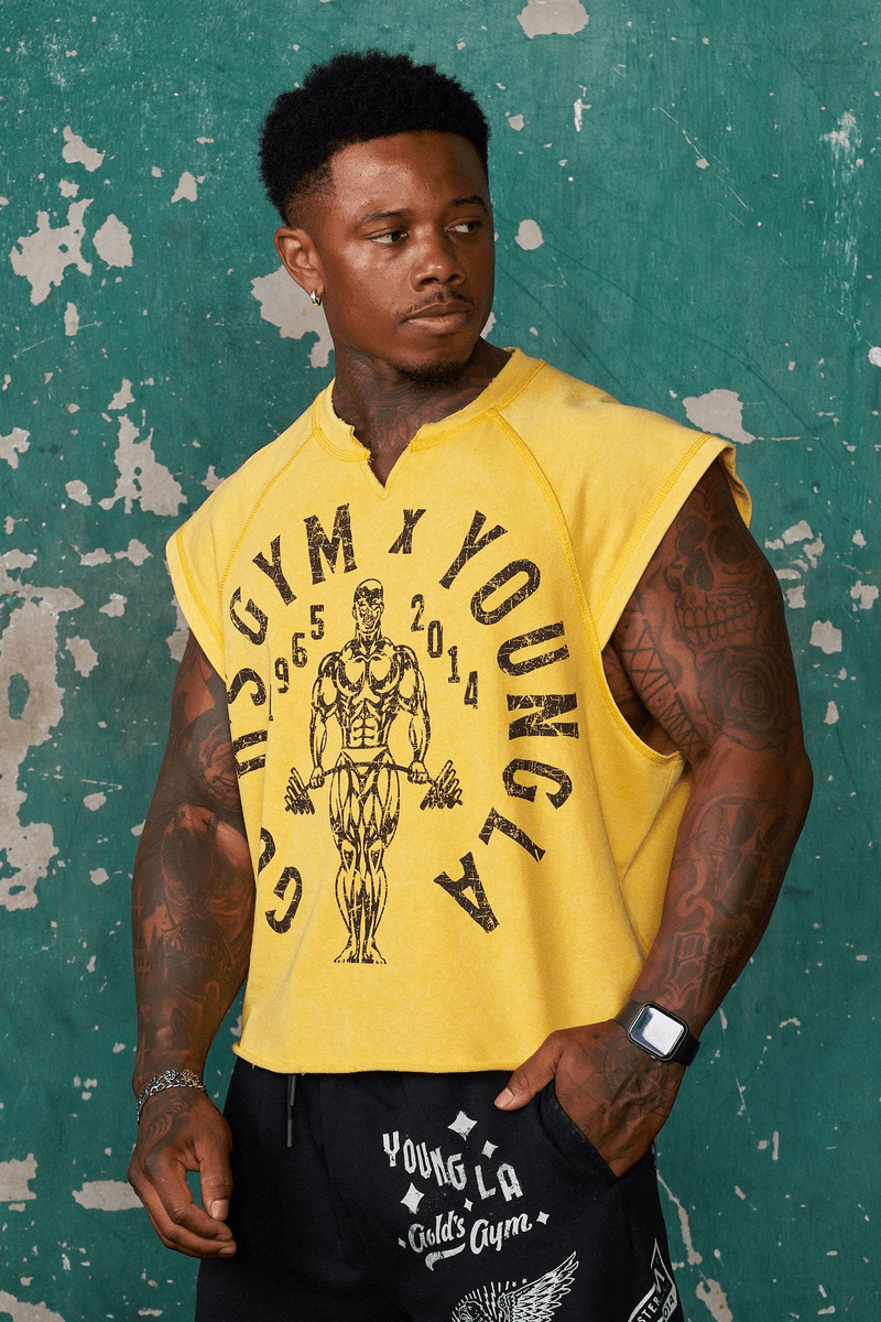 Don't miss out on adding the Youngla 5069 - Golds Gym Vintage Cut Offs Yellow Wash to your collection. Click 'Add to Cart' now and step up your style game!