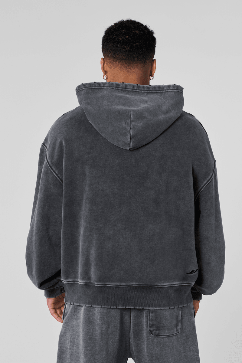 Pair this hoodie with joggers for a laid-back look or throw it on over jeans for an outing. The model featured is 5'11" and weighs 185 lbs, showcasing the relaxed fit in a size large. This hoodie is perfect for anyone looking to combine comfort with contemporary style.