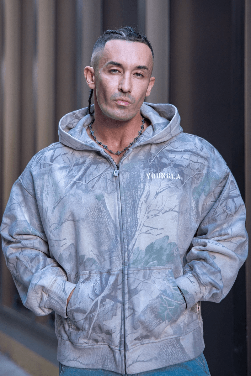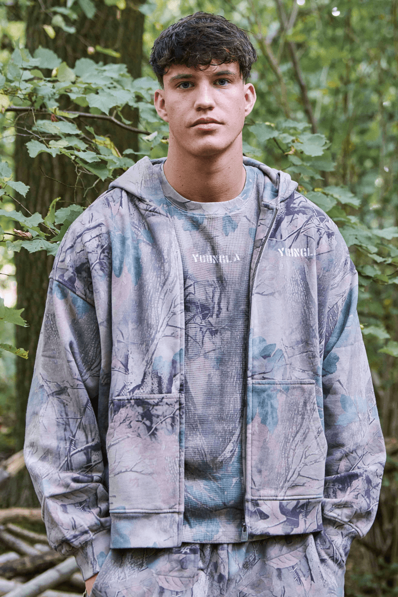 The Youngla 5116 - Tree Camo Collection - Zip Ups Beige Tree Camo boasts a unique tree camo design that stands out while blending in. The 420 gsm terry fabric offers a substantial feel without the bulk, ensuring you stay comfortable all day long. Whether you're heading to the gym, running errands, or enjoying the outdoors, this zip-up provides the perfect blend of style and practicality.