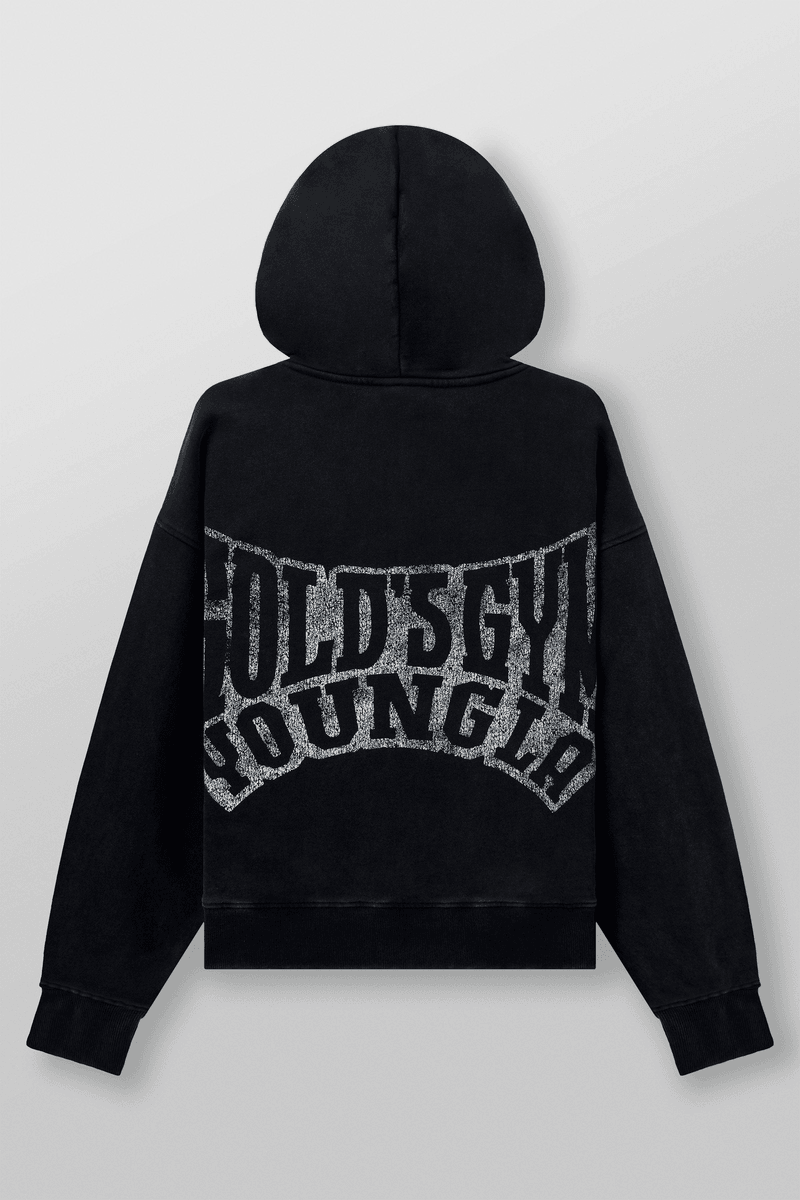 Elevate your style with the Youngla 5162 - Gold's Gym Throwback Zip-ups Black Wash. This hoodie perfectly blends vintage gym culture with contemporary streetwear, making it a must-have for any wardrobe.