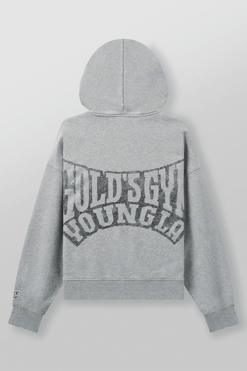 Elevate your casual style with the Youngla 5162 - Gold's Gym Throwback Zip-ups in Heather Grey. This zip-up hoodie seamlessly blends classic gym aesthetics with contemporary streetwear, making it a must-have for fitness enthusiasts and fashion-forward individuals alike.