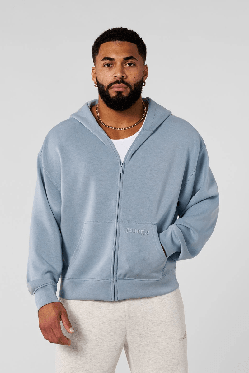 Elevate your wardrobe with the Youngla 5215 - Soft AF Zip Ups in Sky Blue. This oversized zip-up jacket redefines comfort and style, making it a must-have for any fashion-conscious individual.