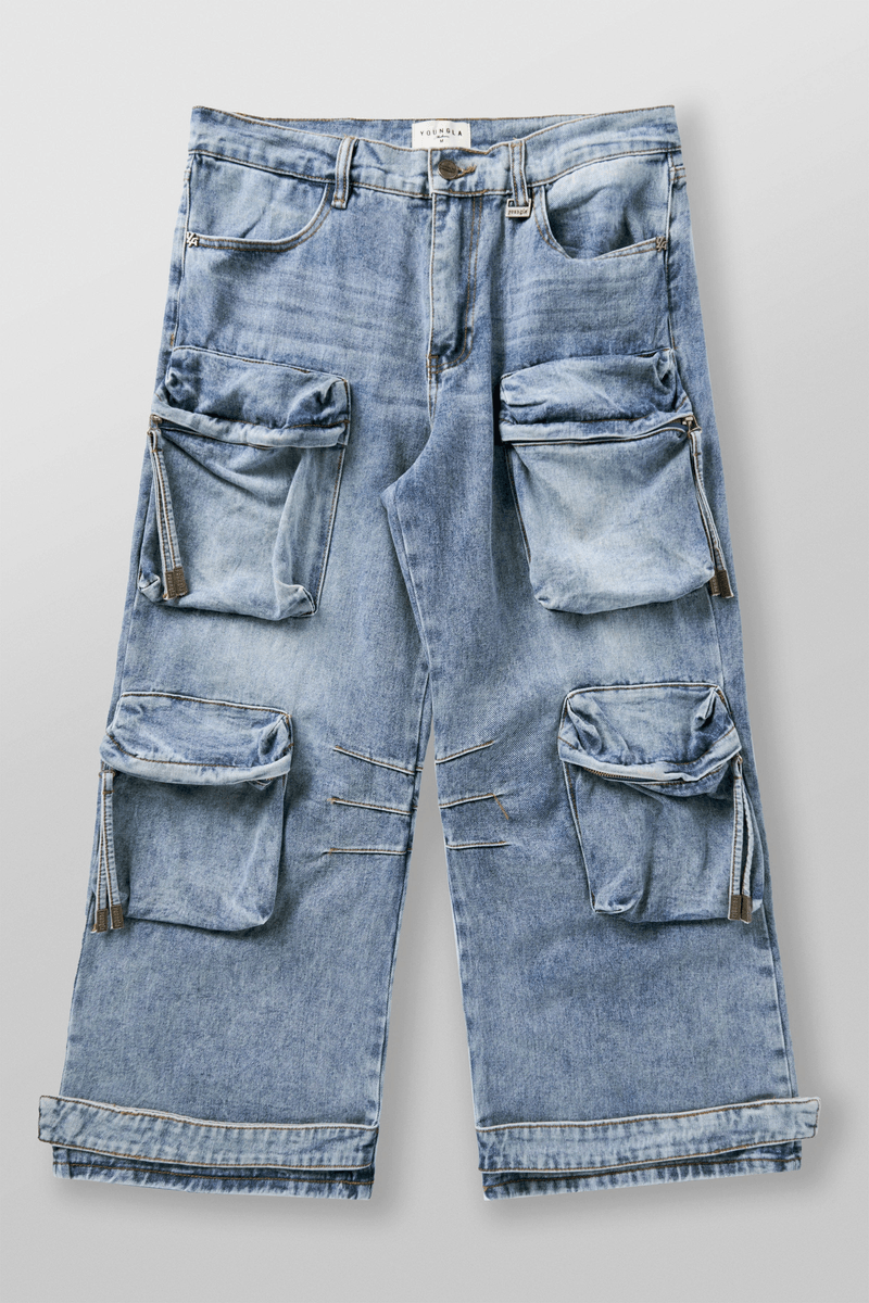 The Youngla 6021 - 8 Pocket Jeans in muted khaki are your go-to choice for a bold yet comfortable look. Ideal for both men and women, these jeans feature a baggy fit that allows freedom of movement while keeping you trendy. The eight cargo pockets provide practical utility, making them perfect for carrying essentials on the go. Whether you're hitting the streets or lounging at home, these jeans are versatile enough for any occasion.
