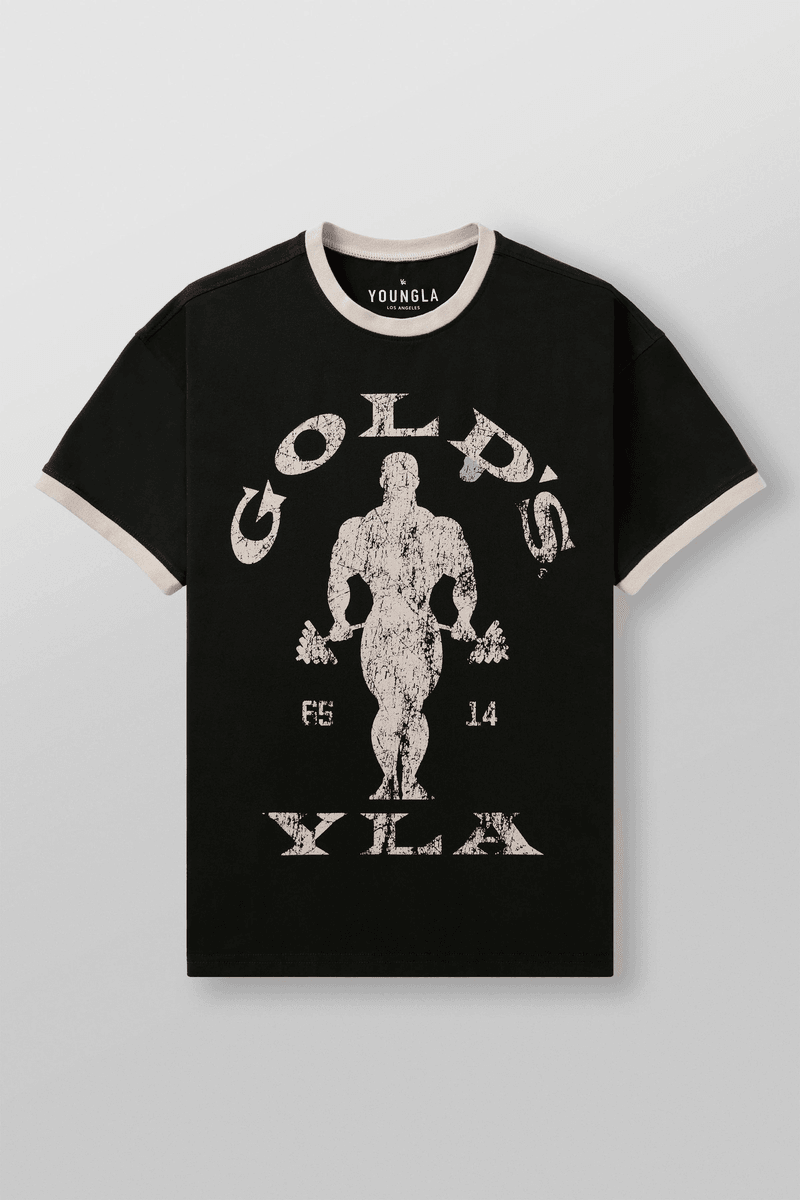 Elevate your workout wardrobe with the Youngla 4009 - Gold's Gym Ringer Tees Black. This stylish tee combines classic aesthetics with modern comfort, making it the perfect choice for fitness enthusiasts and casual wear alike.