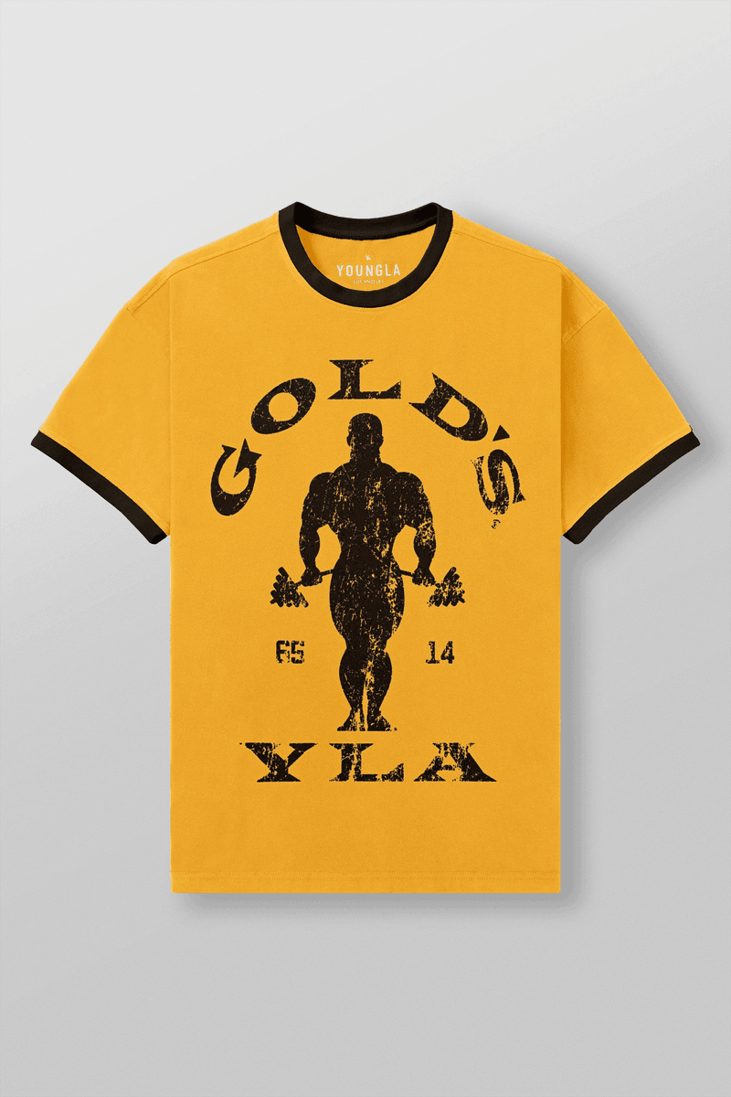 Elevate your workout wardrobe with the Youngla 4009 - Gold's Gym Ringer Tees Yellow. This stylish tee perfectly combines vintage flair with modern comfort, making it an essential piece for any fitness enthusiast.