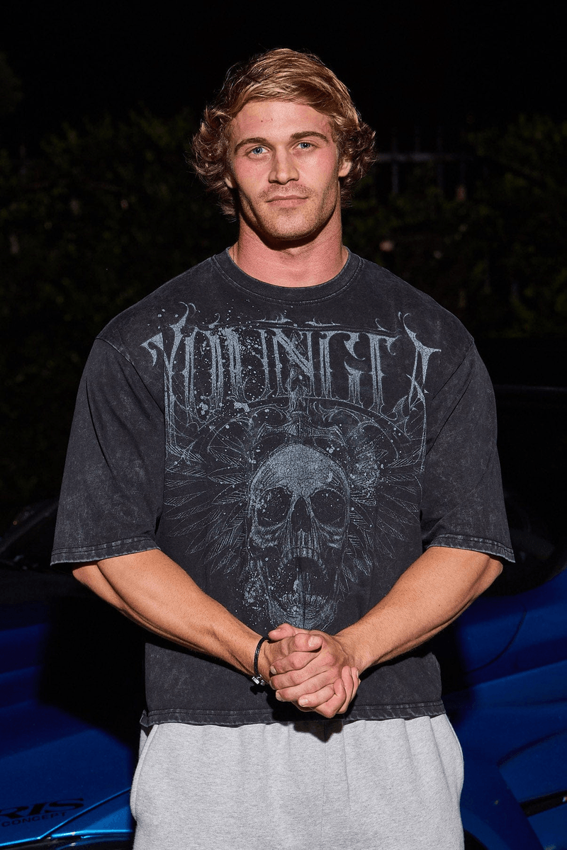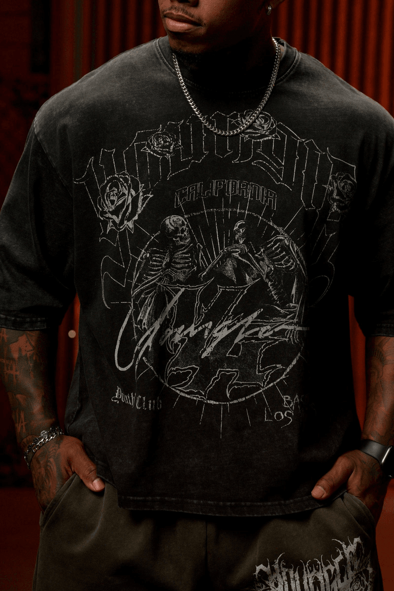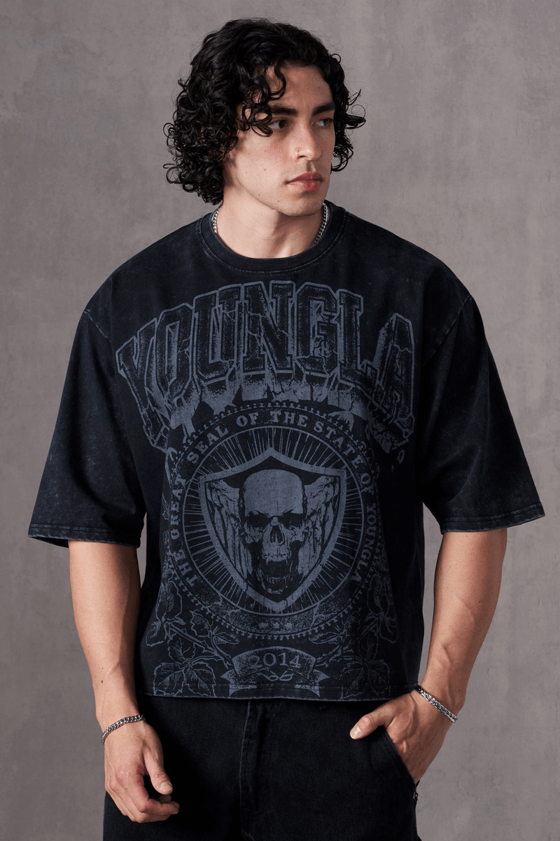 Unleash your edgy style with the Youngla 4021 - After Life Tees Skull Emblem, the ultimate addition to your casual wardrobe. Made from 100% premium cotton, these acid-washed black tees offer a unique aesthetic that stands out in any crowd.