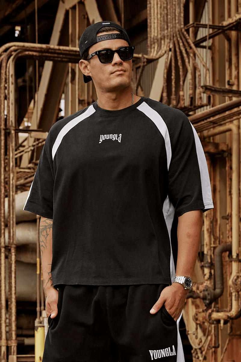 The Youngla 4104 - Stellar Tees Navy is more than just a t-shirt; it's a statement piece. The oversized fit allows for unrestricted movement, making it perfect for active days or laid-back evenings. The raglan paneling adds a touch of sophistication while maintaining a clean and classic aesthetic.