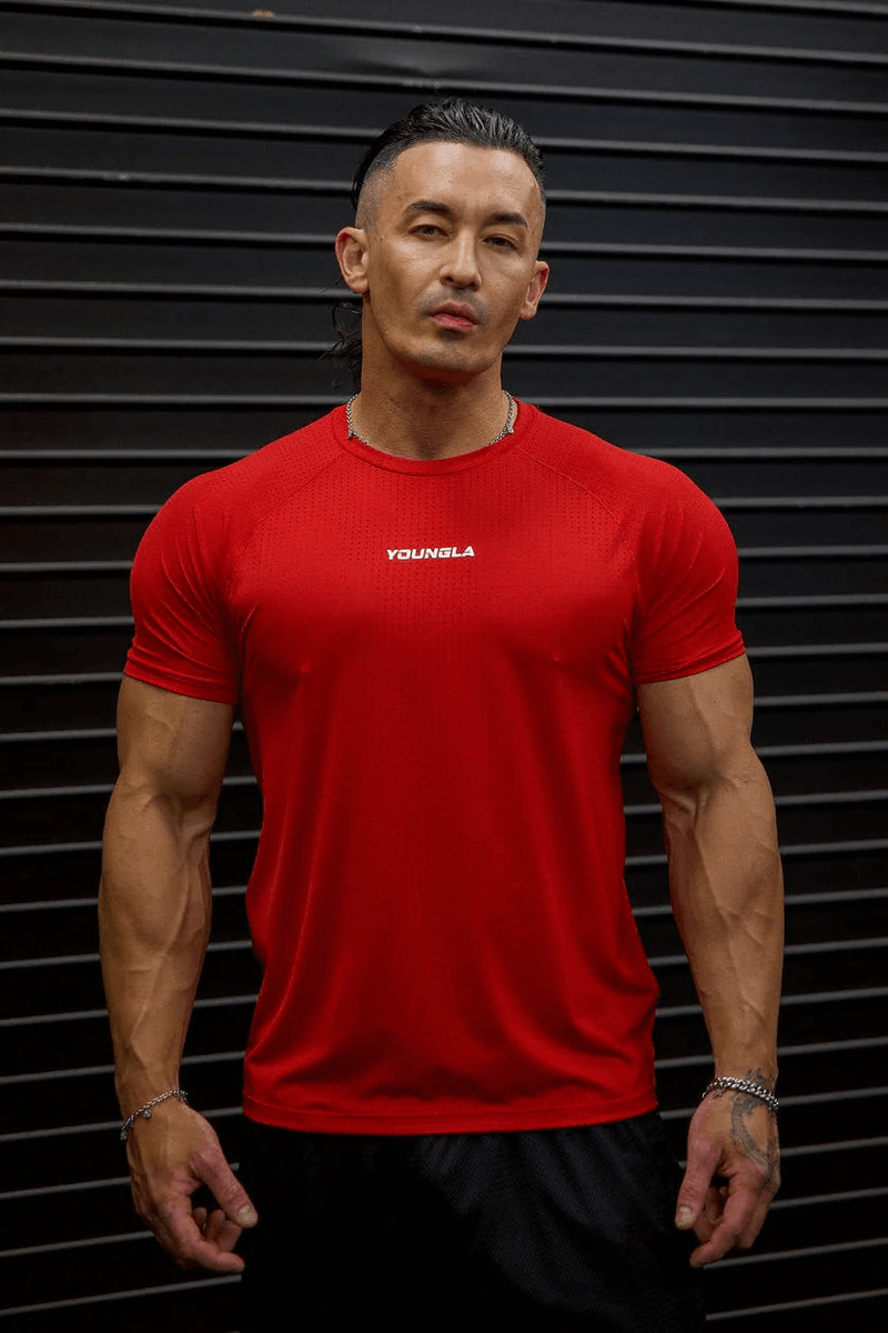 The Youngla 4115 - AeroMesh Shirts Red is crafted to perform under pressure. Its unique fabric blend ensures you stay cool and comfortable, even during the most intense training sessions. This fitted tee not only looks great but also moves with you, making it an essential addition to your activewear collection.