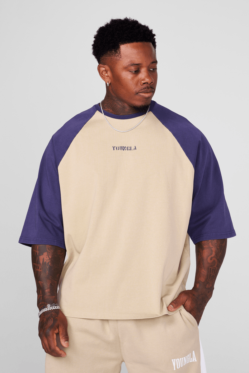 Elevate Your Style with the Youngla 4139 - Oversized Baseball Tees Tan/Navy