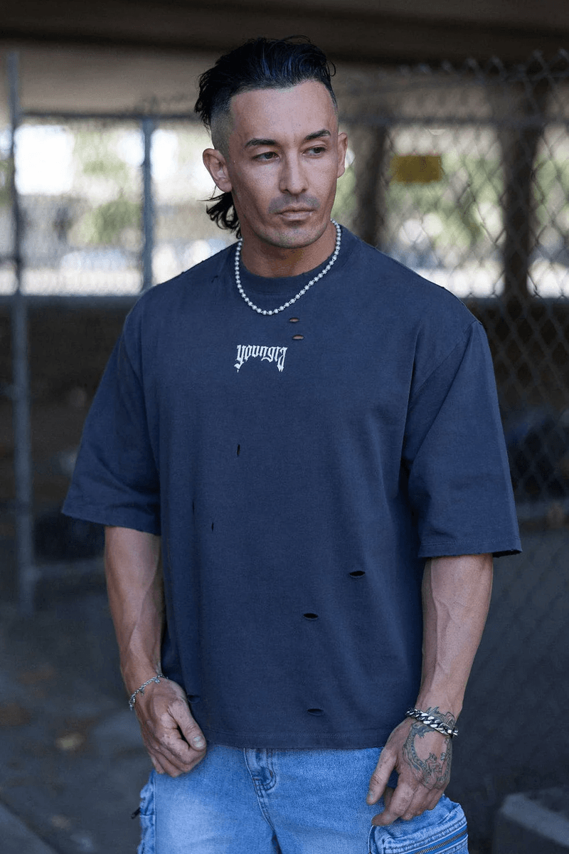 Elevate your streetwear game with the Youngla 4144 - Distressed Tees Teal. This oversized tee is not just a piece of clothing; it’s a statement of style and attitude. Crafted from 100% cotton, it offers unparalleled comfort while providing a unique, edgy look.