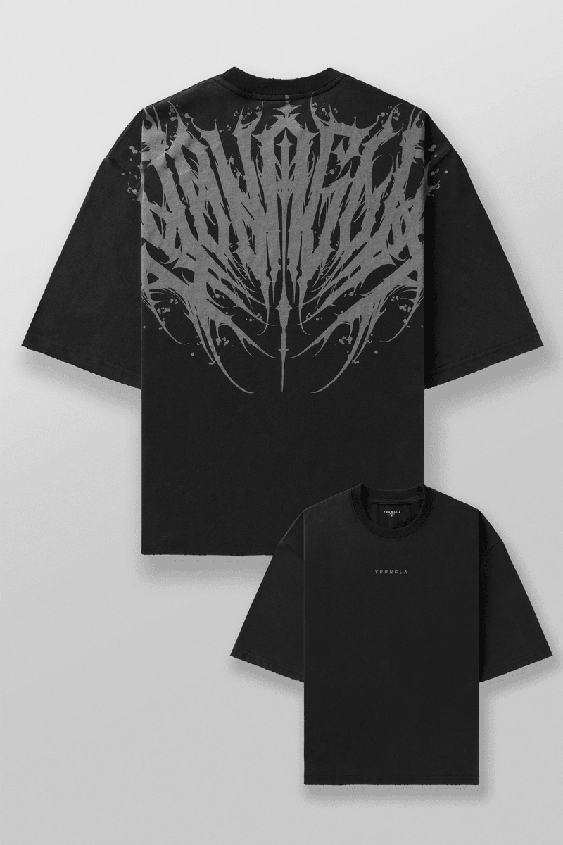 Elevate your casual style with the Youngla 4185 - Chaos Tees Black Wash. This oversized tee is designed for those who dare to stand out, featuring a striking tattoo-inspired graphic that makes a bold statement.