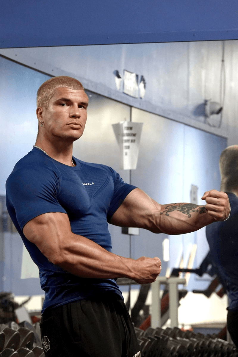 With its advanced moisture-wicking and antibacterial properties, you'll stay comfortable and confident throughout your training sessions. The model shown is 5'10" and weighs 175 lbs, showcasing the perfect fit in a size medium.