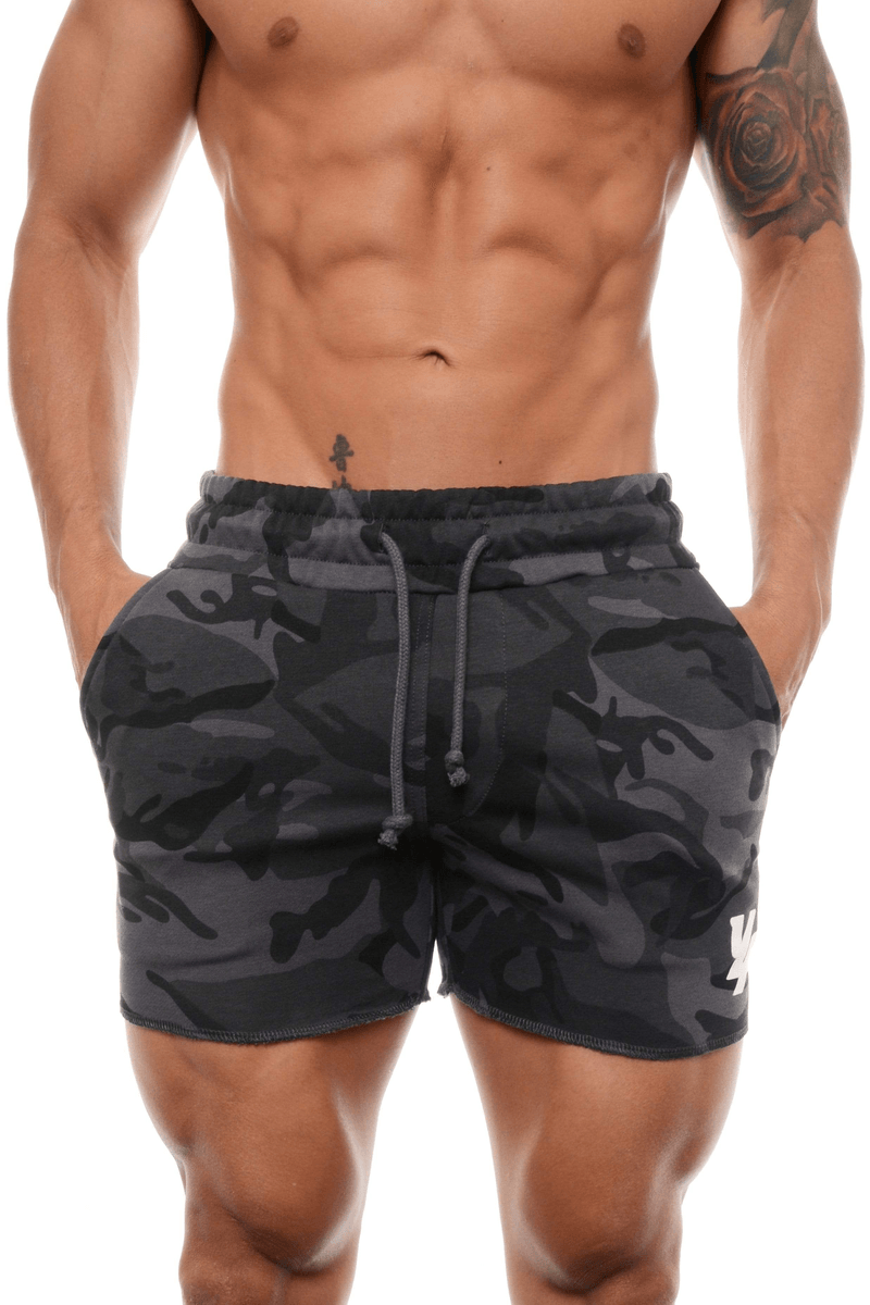Elevate Your Workout with Youngla 102 Bodybuilding French Terry Shorts Camo Black