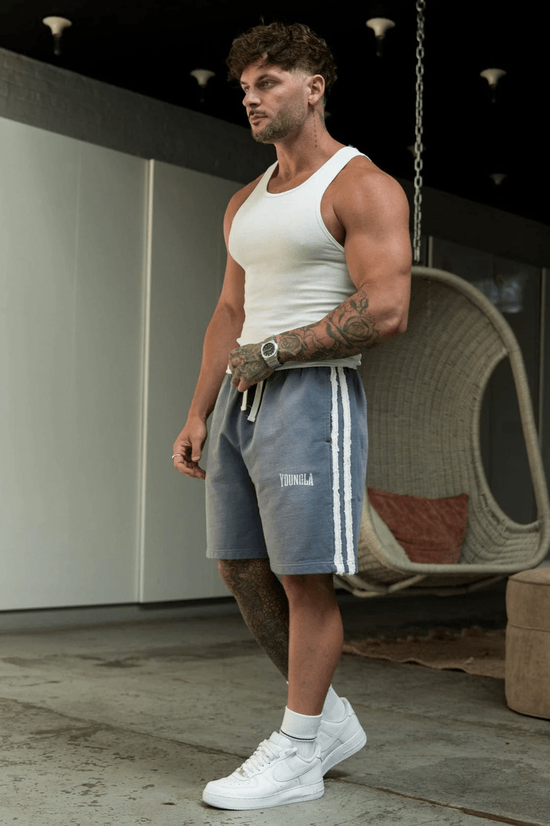 Experience the ultimate blend of comfort and style with the Youngla 1058 - Vintage Striped Sweat Shorts Black Wash. Made from high-quality 460 gsm cotton, these shorts provide a heavyweight feel that ensures durability and coziness. The loose fit allows for unrestricted movement, making them perfect for your most intense workouts or laid-back days at home.