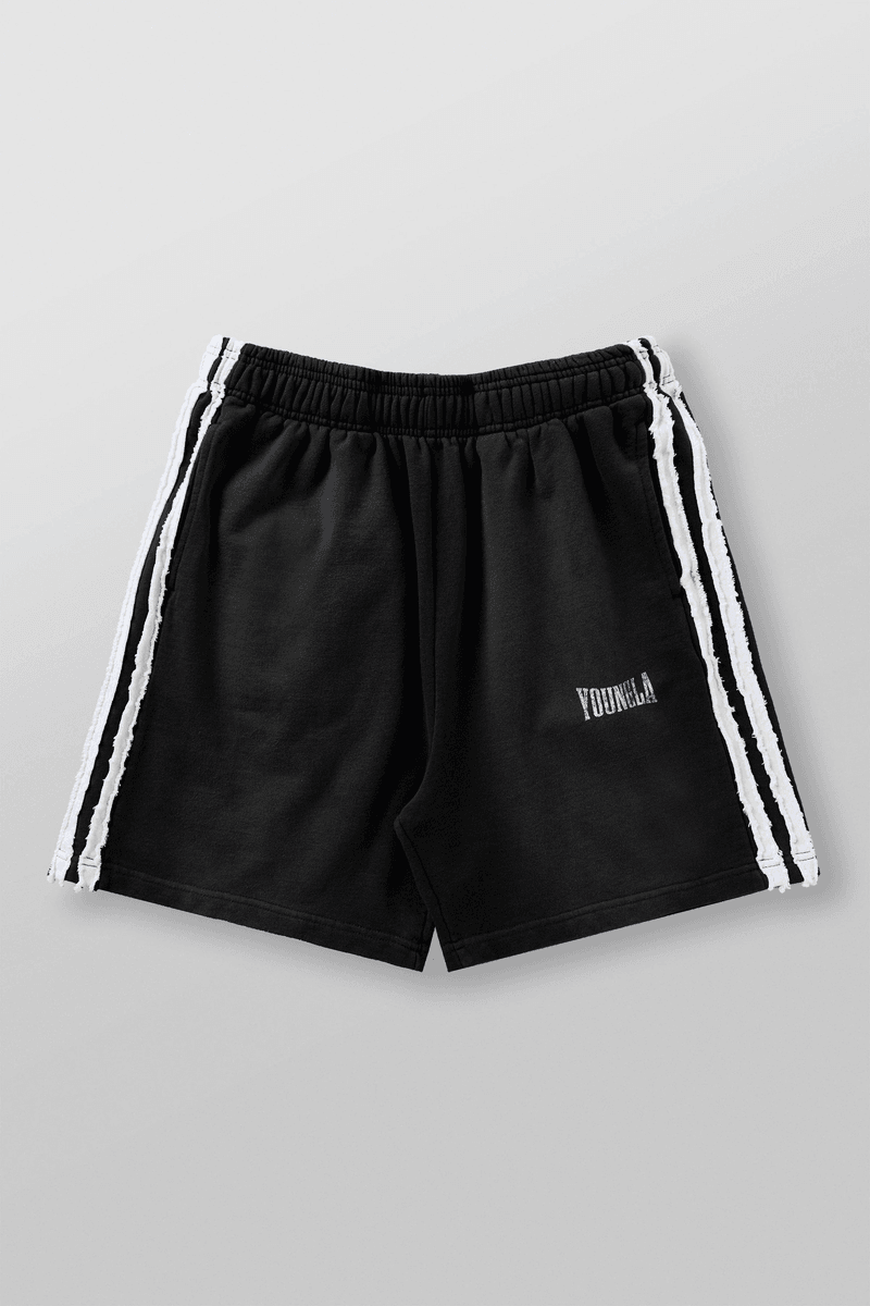 The Youngla 1058 - Vintage Striped Sweat Shorts Blue Wash are crafted from robust 100% cotton, providing a cozy feel without sacrificing style. With a fabric weight of 460 gsm, these shorts offer a substantial fit that stands up to any activity. The striking raw-cut dual side stripes enhance the vintage appeal, making them a standout piece in any casual collection.