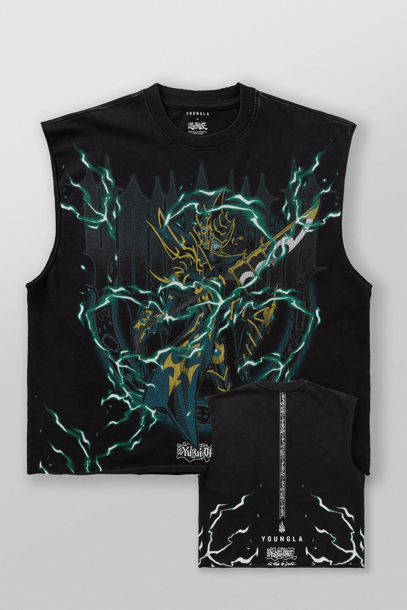 Unleash your inner duelist with the Youngla 3033 - Yu-Gi-Oh!® Cut-Offs Lightning Paladin. This unique tank top combines comfort and vibrant anime aesthetics, making it a must-have addition to your wardrobe.