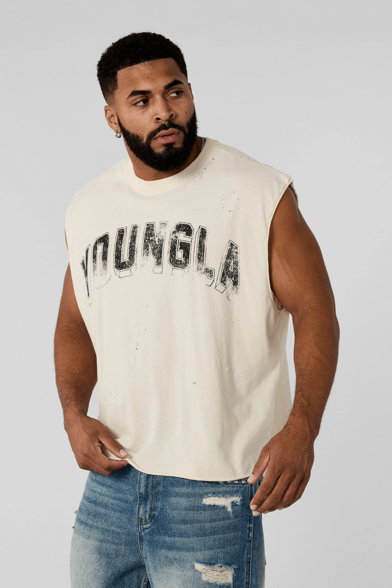 Elevate your casual wardrobe with the Youngla 3054 - Scuffed Cloud Cut-offs Off-White. This stylish tee combines comfort and contemporary design, making it the perfect addition to your summer essentials.