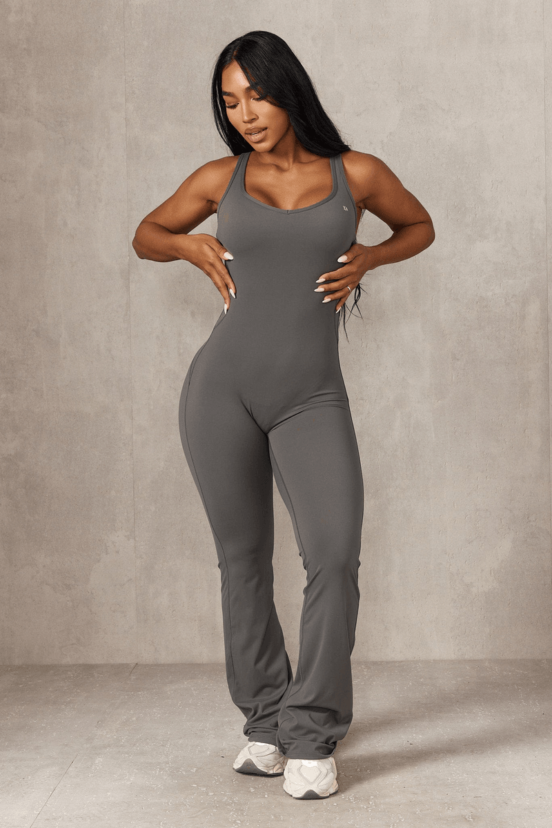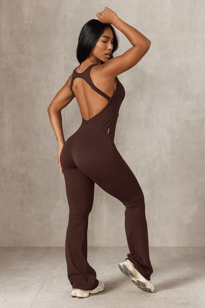 Elevate your wardrobe with the Youngla W237 On-The-Go Flare Romper in Brown. This innovative romper combines the trendsetting flare design with all the comfort you need, making it a must-have for both gym sessions and casual outings.