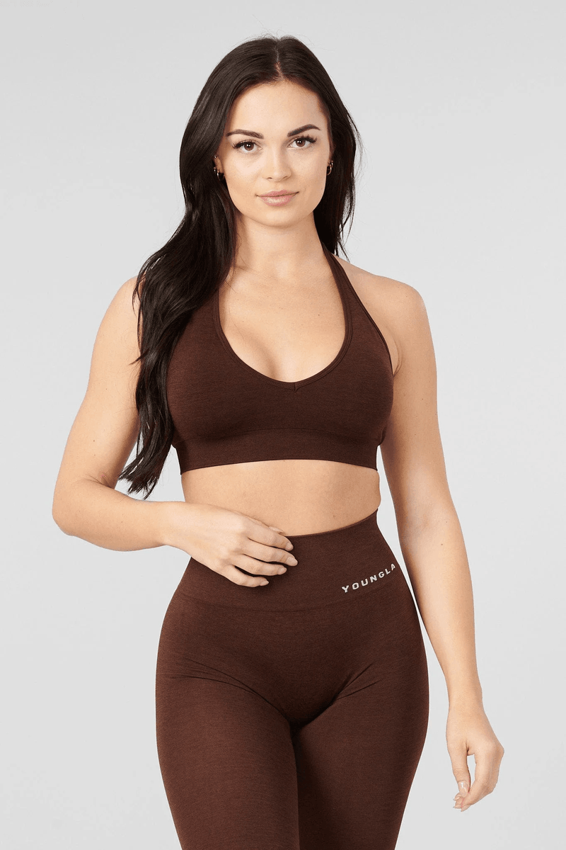 Discover the Youngla W328 - Core Seamless Halter Sports Bra in Tweed Brown