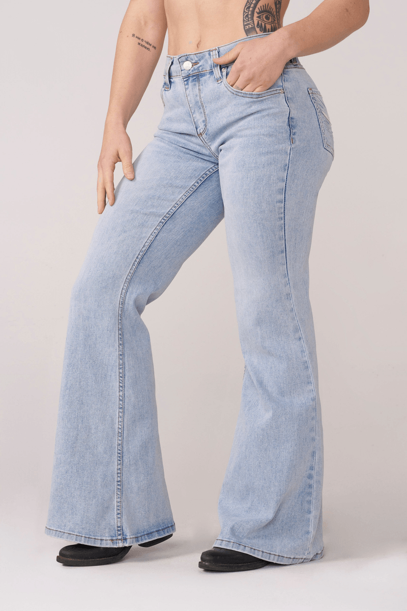Elevate your style with the Youngla W258 Winged Flare Jeans in Black Wash. These jeans are designed to not only fit like a glove but also to enhance your natural curves. Experience the perfect blend of comfort and flair that allows you to stand out effortlessly.