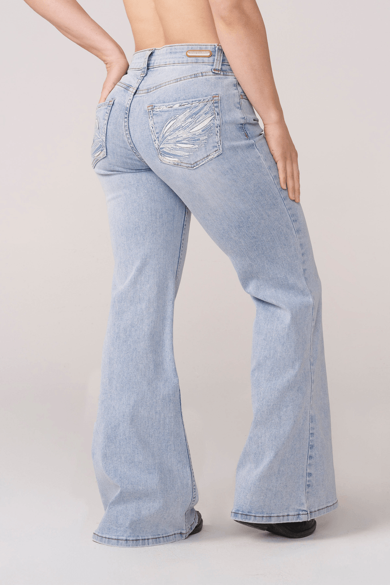 Discover the Youngla W258 Winged Flare Jeans in Light Wash