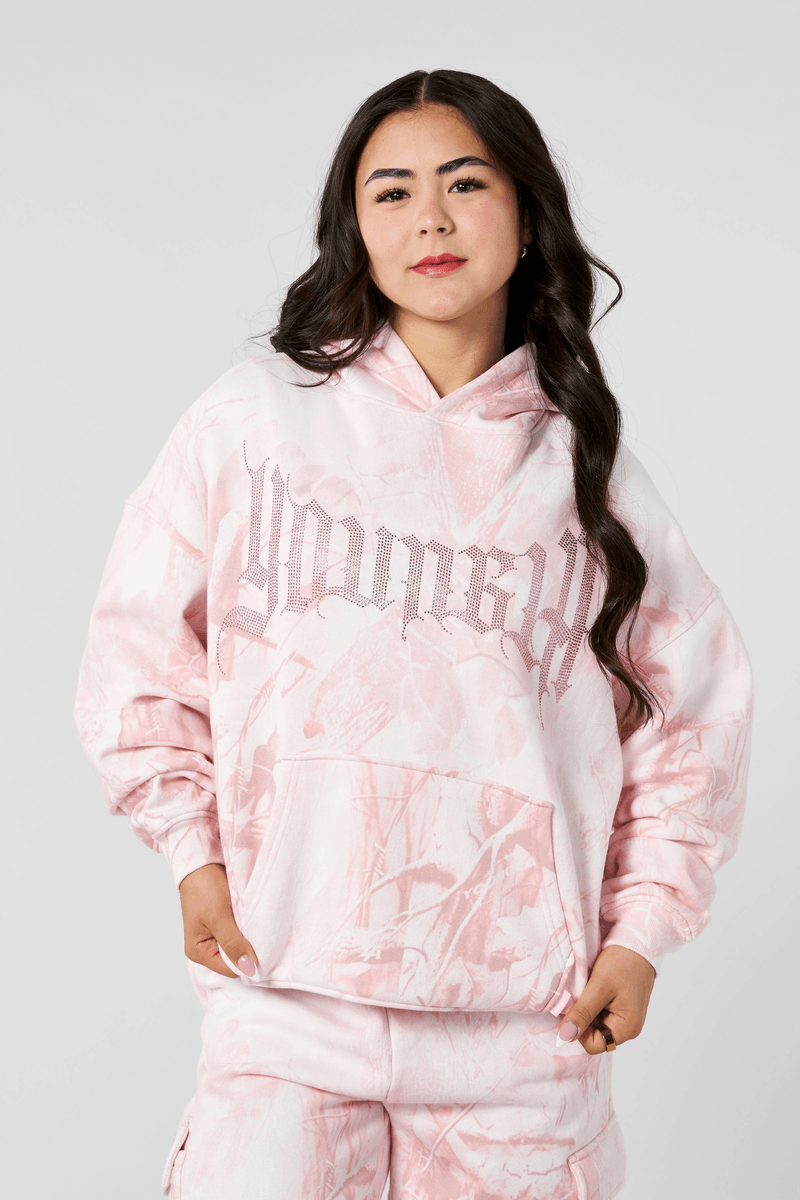 Discover the Youngla W5168 - Camo Bling Hoodie Pink Barbed Wire Camo