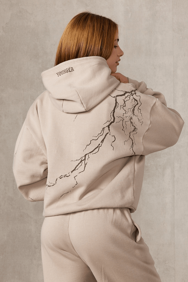 Elevate your winter wardrobe with the Youngla W536 Illumin-ATE Hoodie Mushroom. This oversized hoodie combines ultimate comfort with striking style, featuring a bold lightning print and an eye-catching Youngla patchwork logo. Perfect for chilly days, this hoodie ensures you stay warm while looking effortlessly cool.