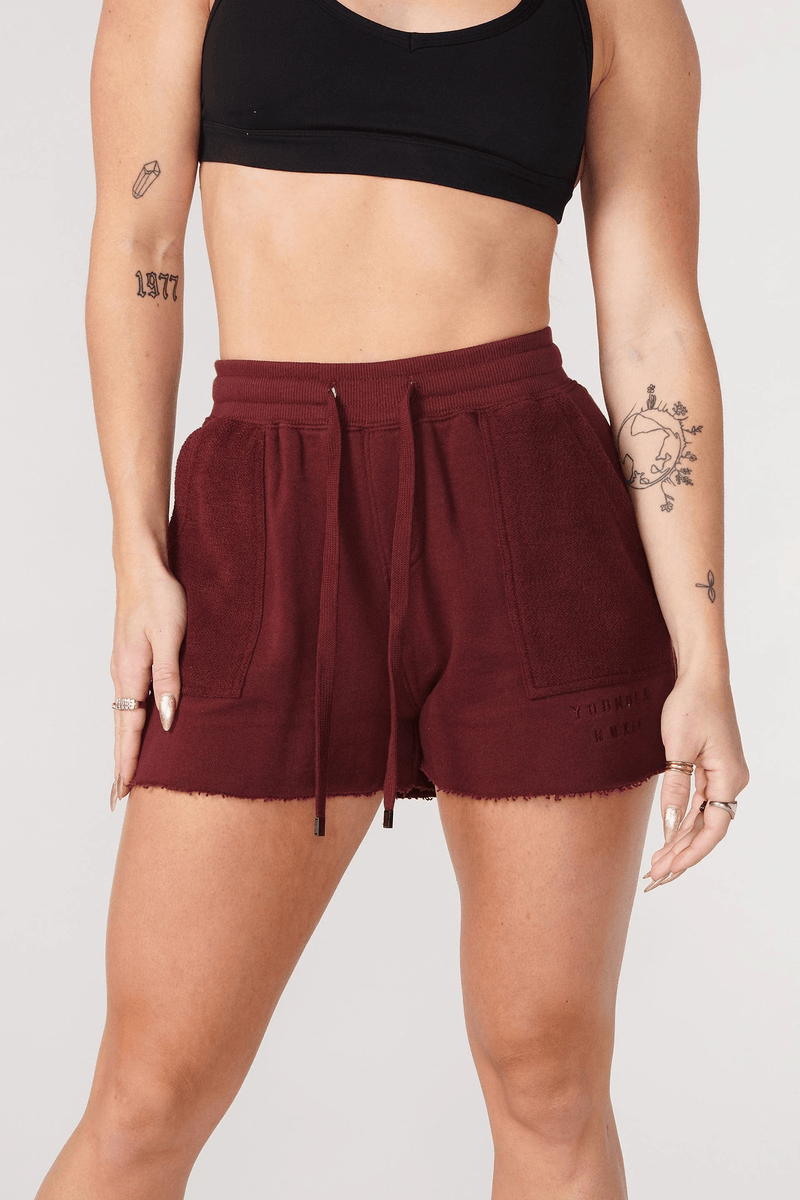 Discover the Youngla W114 Reversed Terry Shorts in Burgundy