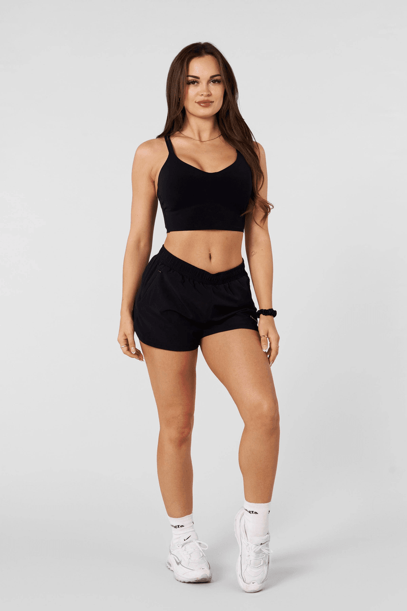 With an adjustable waist and a comfortable fit, you can focus on your performance without distractions. The model showcased is 5'5" and wears a size small, highlighting the true-to-size design that caters to various body types.