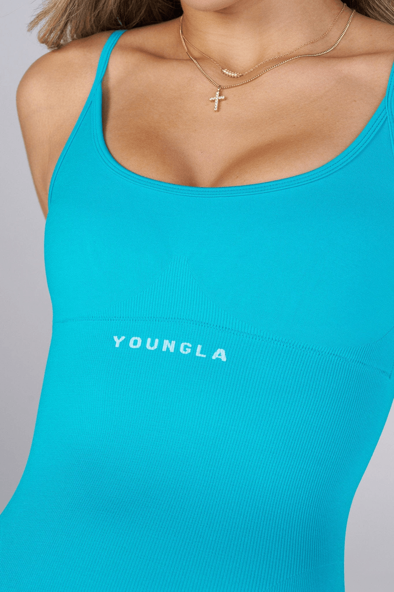 Elevate your fitness wardrobe with the Youngla W346 Core HourGlass bodysuit in a stunning turquoise hue. This seamless bodysuit is designed to enhance your silhouette while providing maximum comfort during any workout. Experience the perfect blend of style and functionality, crafted for the modern active lifestyle.