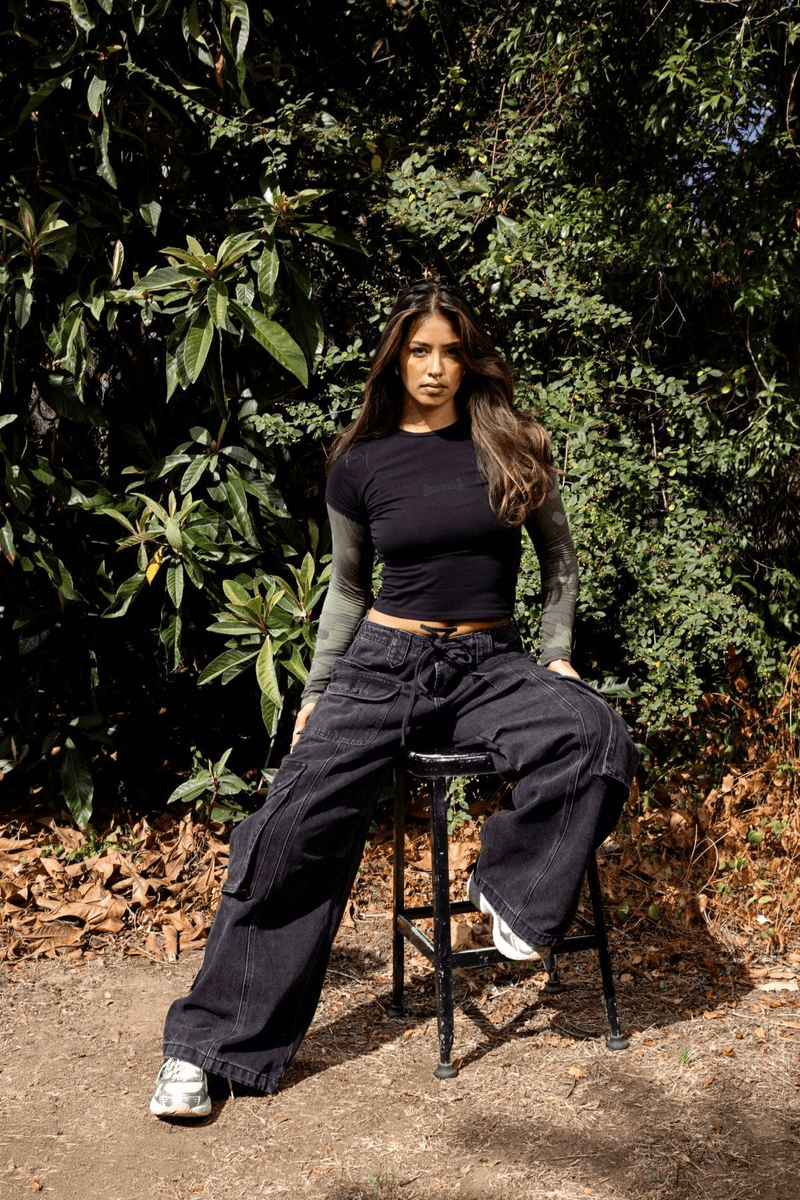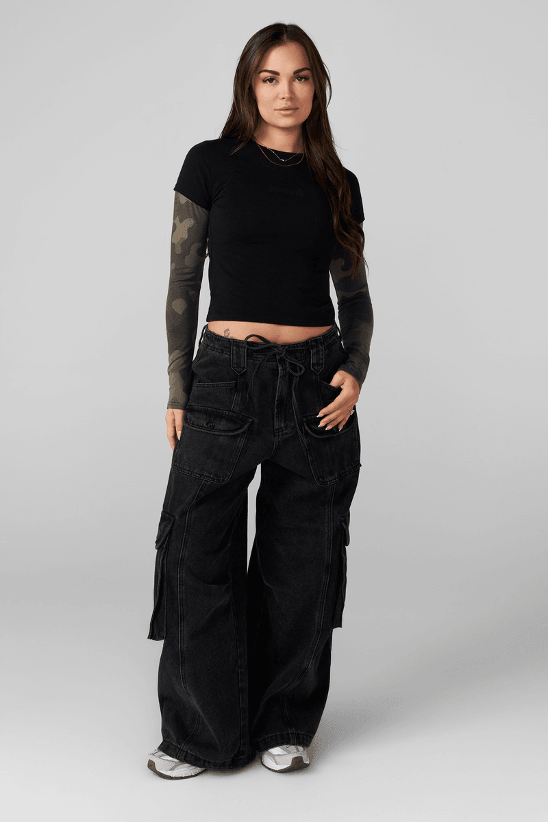 Youngla W4293 - Camo Twofer Baby Tee Black Barbed Wire Camo