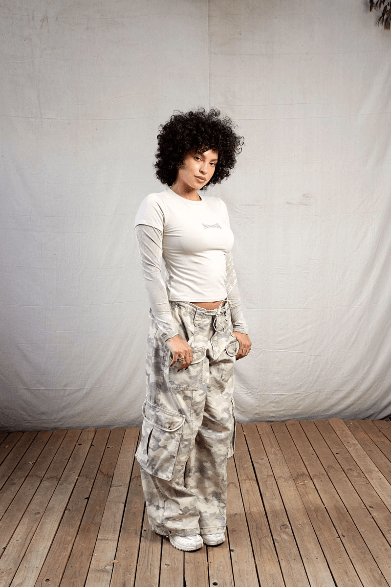The Youngla W4293 - Camo Twofer Baby Tee features a fresh take on a classic silhouette with its trendy twofer-style sleeves, ensuring your child stands out in any setting. Crafted from a soft, slightly stretchy fabric, this baby tee is designed for a comfortable fit that flatters all body types. The midi-length body hits just right, making it an ideal choice for both layering and solo wear.