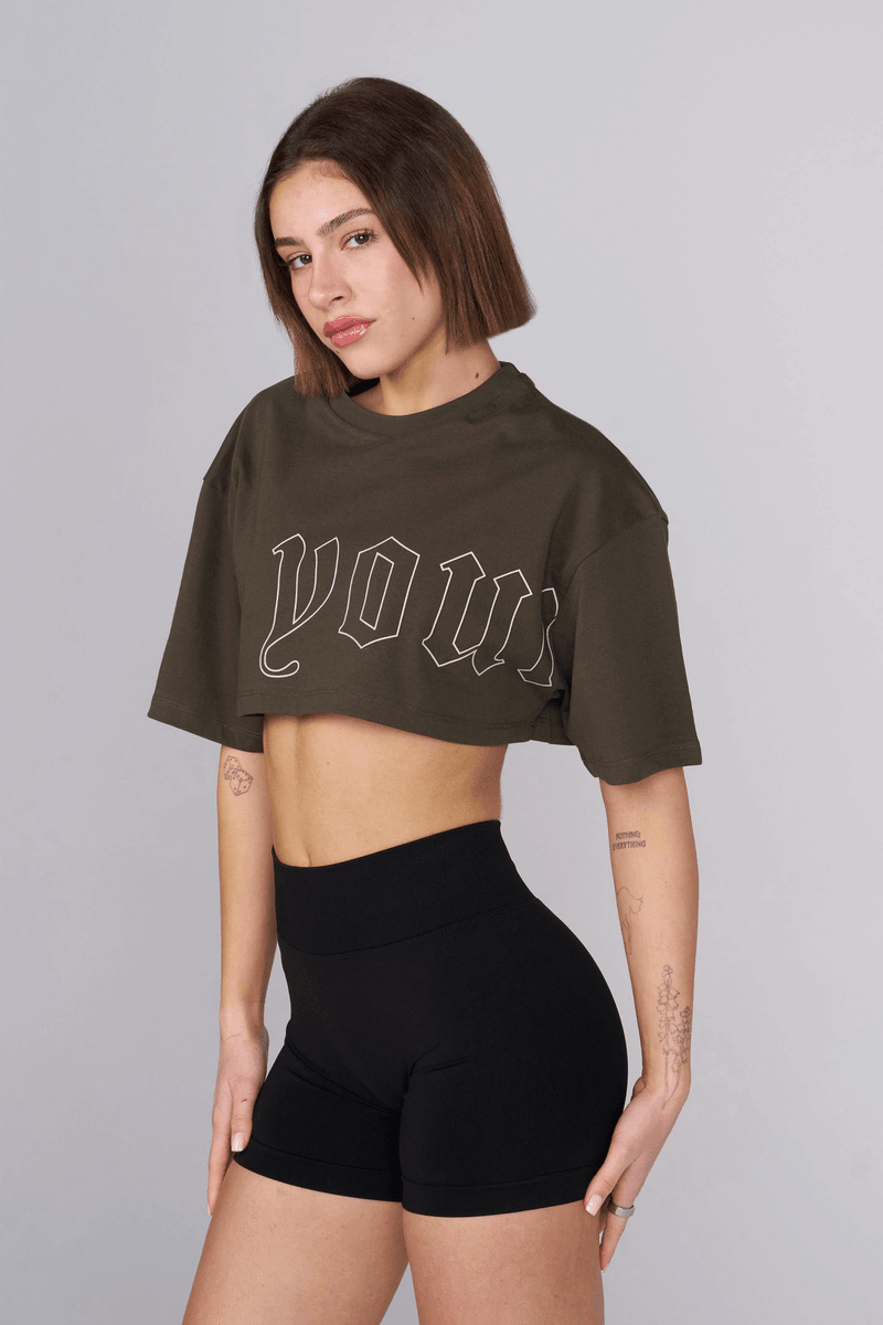 Discover the Youngla W436 - Urban Crop Tee in Forest Night