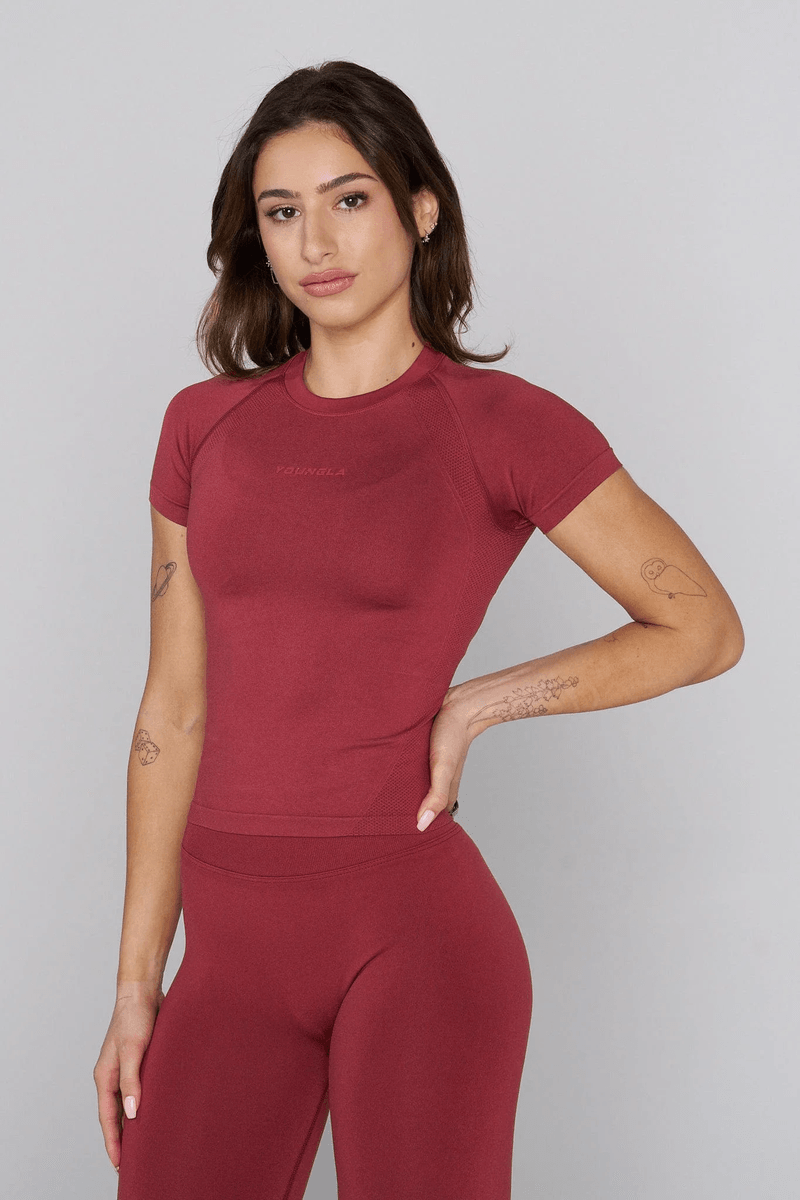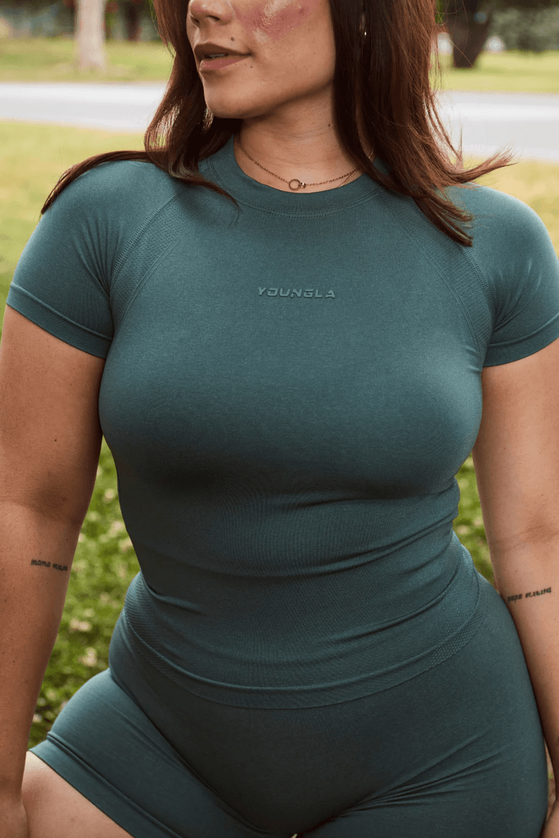 Experience unmatched comfort and style with the Youngla W446 Seamless Curve Compression Tee Cider. This innovative activewear piece is designed to enhance your shape while supporting peak performance during your workouts.