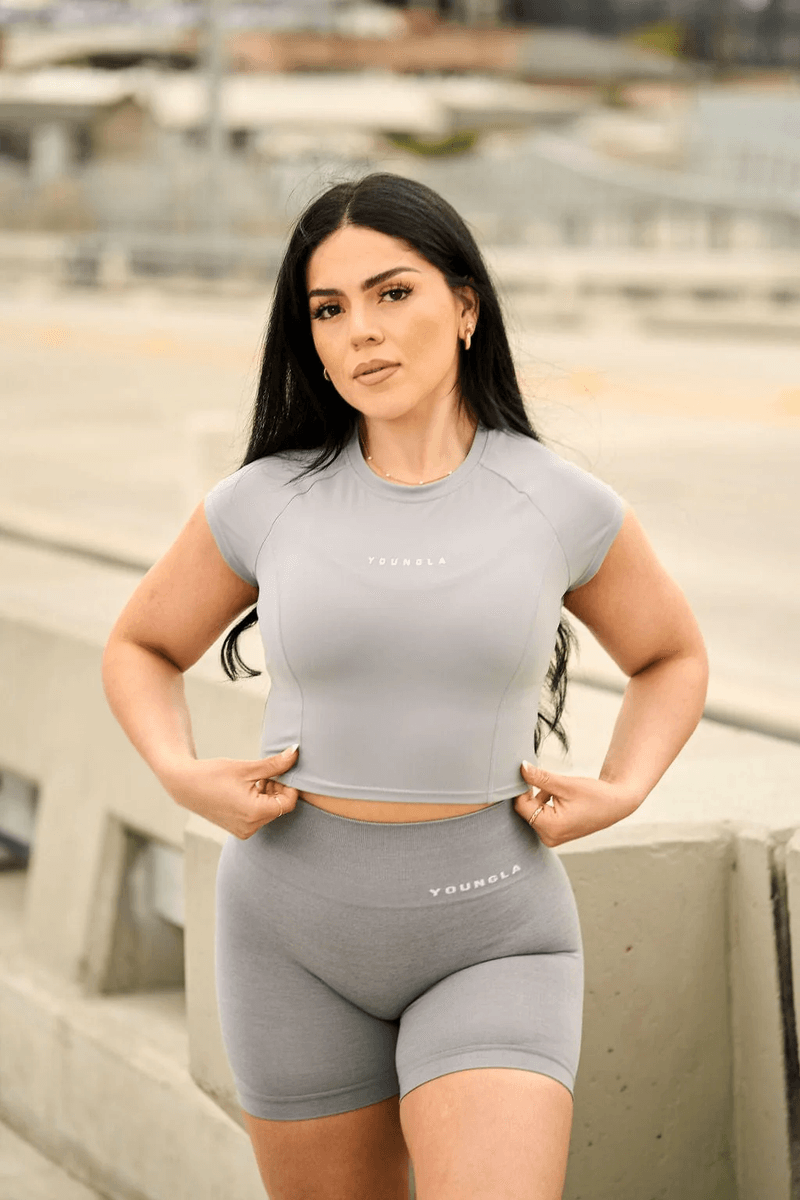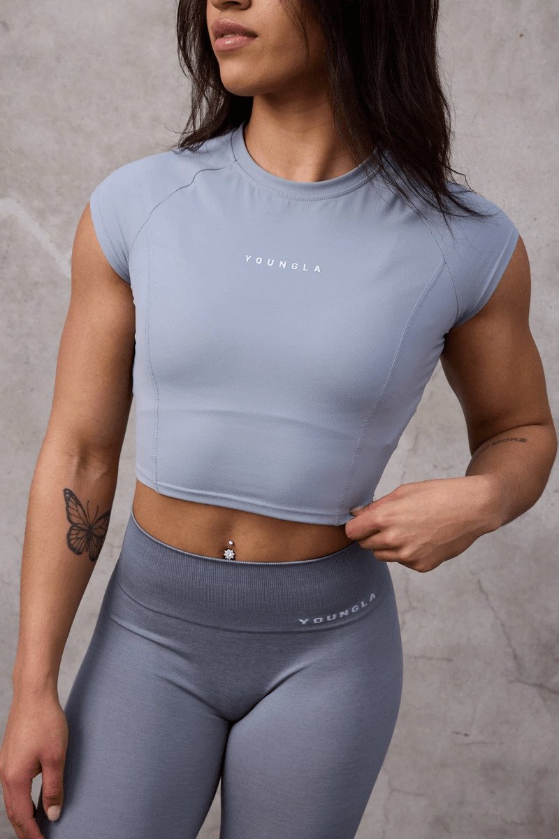 Introducing the Youngla W447 compression cap sleeve Crop Violet, the ultimate blend of style and performance. This crop tee is designed to enhance your workout experience, offering unparalleled support and comfort.