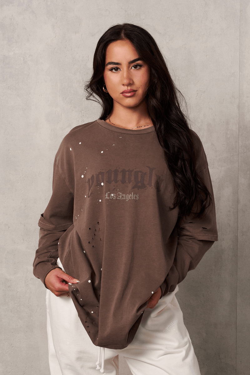 Unleash your inner rebel with the Youngla W462 Ravage Tee Deep Taupe. This oversized tee is designed for those who dare to stand out, featuring a unique grunge-inspired aesthetic that effortlessly elevates your street style.