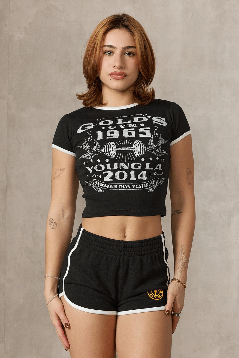 Elevate your wardrobe with the Youngla W471 Gold's Gym Ringer Baby Tee Black, the perfect blend of comfort and style. This must-have tee is designed for those who appreciate both fashion and functionality in their everyday wear.