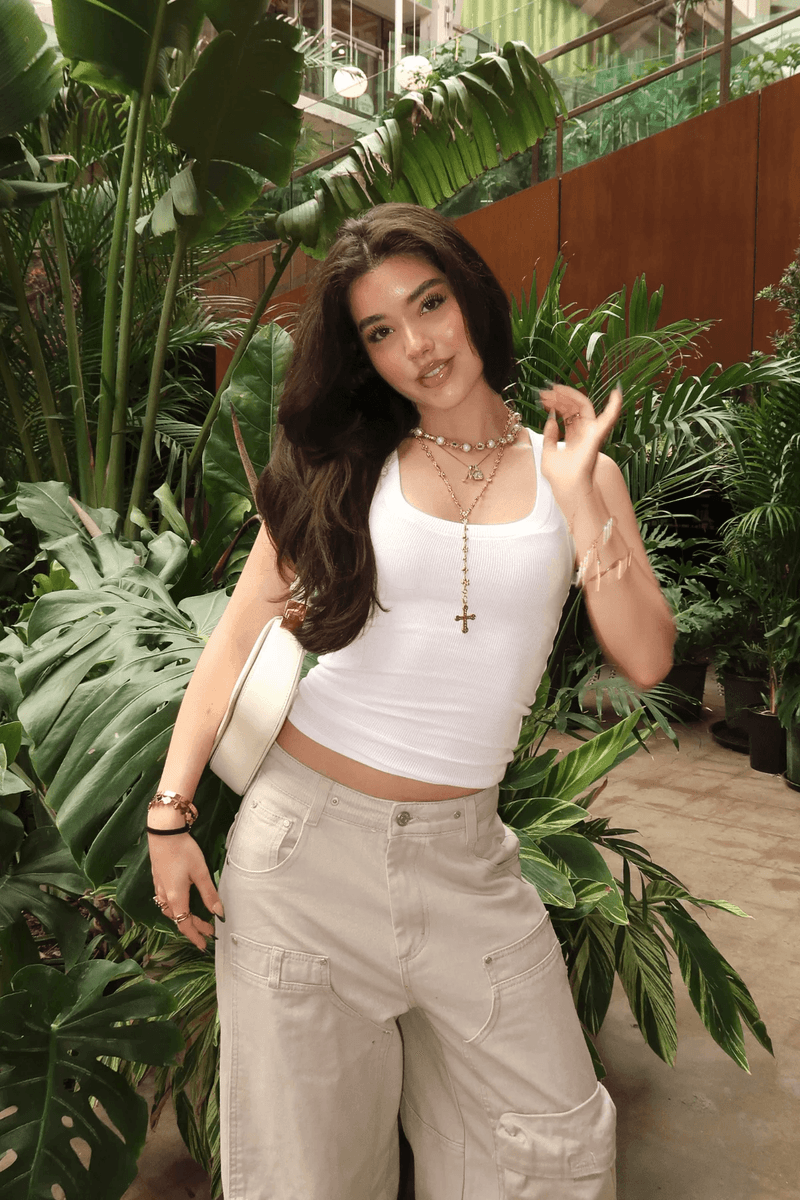 Whether you're layering it under a jacket or showcasing it on its own, this tank top will become your go-to choice for effortless style. The model shown is 5'4" with bust size 31, waist size 25, and hip size 38, wearing a size small.